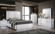 Queen Bed + NS +Dresser + Mirror Glam Metallic Gray Engineered Wood, Solid Teak, Rubberwood, Laminate 7-Ray Headboard Backlit LED on Headboard and Mirror Felt-Lined Top Drawer Metal Side Glide Metal Handles Metallic Scale Molding Trim