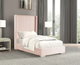 4 Pc Twin Bedroom Set     |    Showcase your personal taste with this bold statement piece in your bedroom. Fully upholstered in flannelette, this bed features an oversized wingback headboard with eye-catching tufting and lined with nailhead trim. The padded fabric and crystal buttons continue all throughout the bed frame...