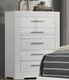 Queen Bed + NS +Dresser + Mirror Glam White Engineered Wood, Metal High Gloss Finish LED on Headboard Metal Side Glide Wooden Legs Chrome Hardware Beveled Mirror